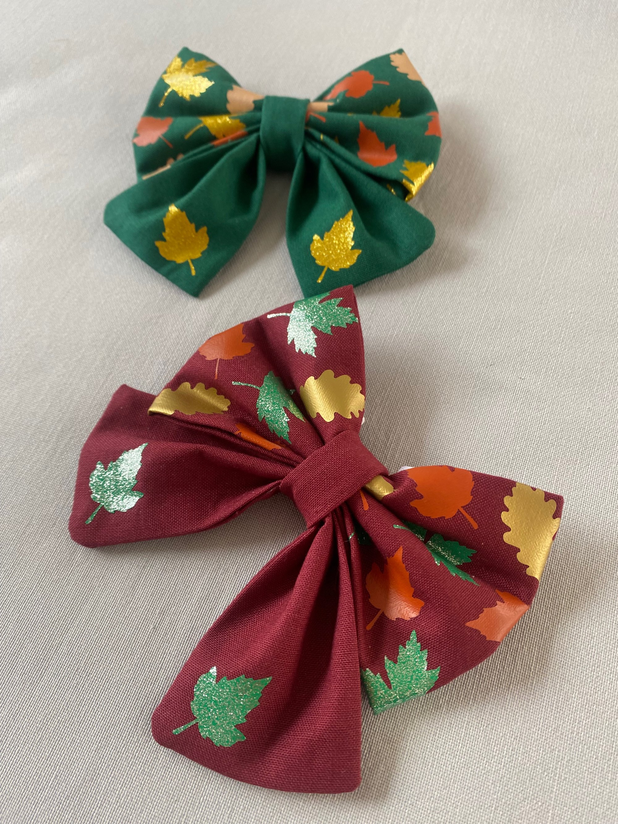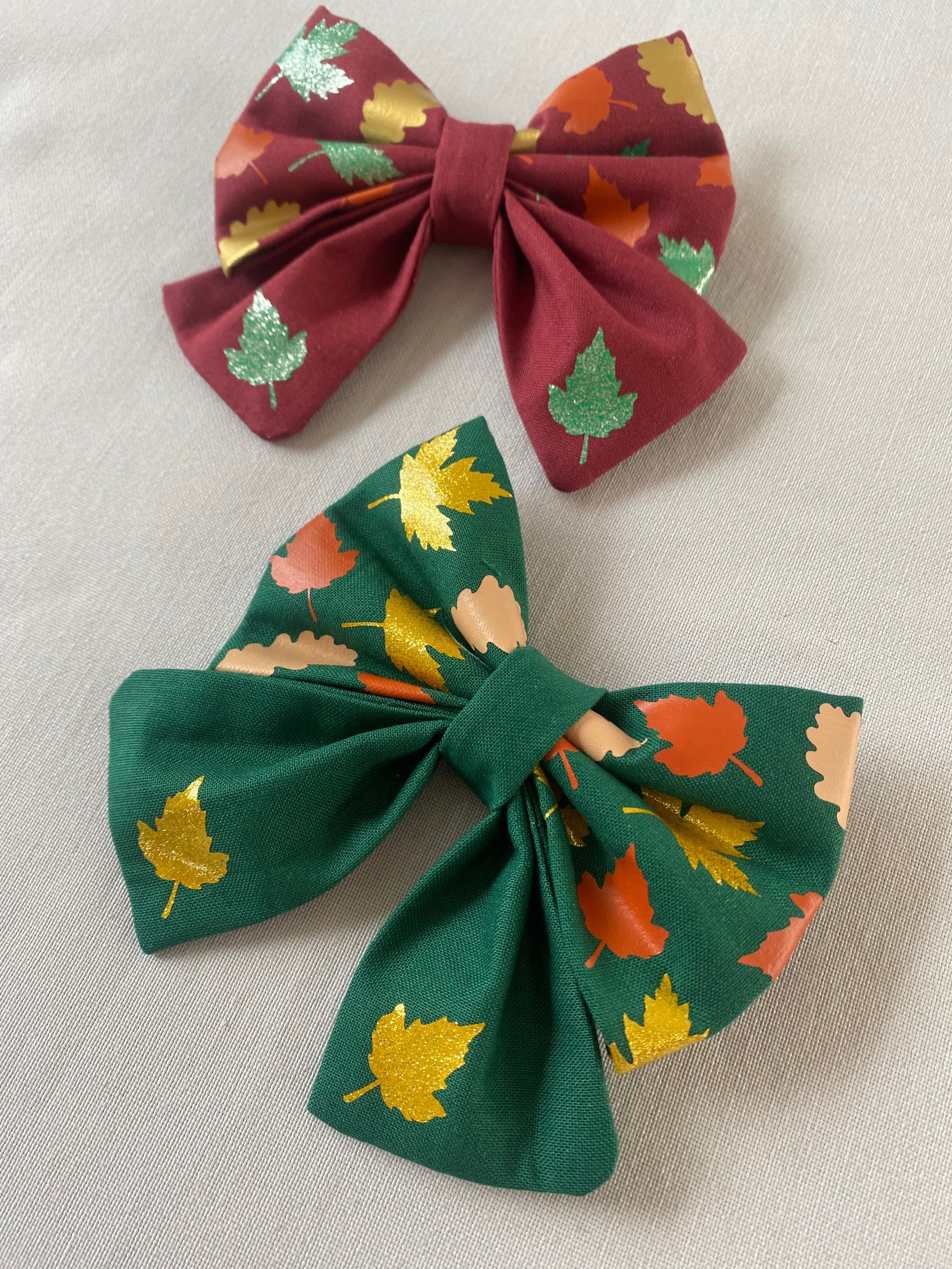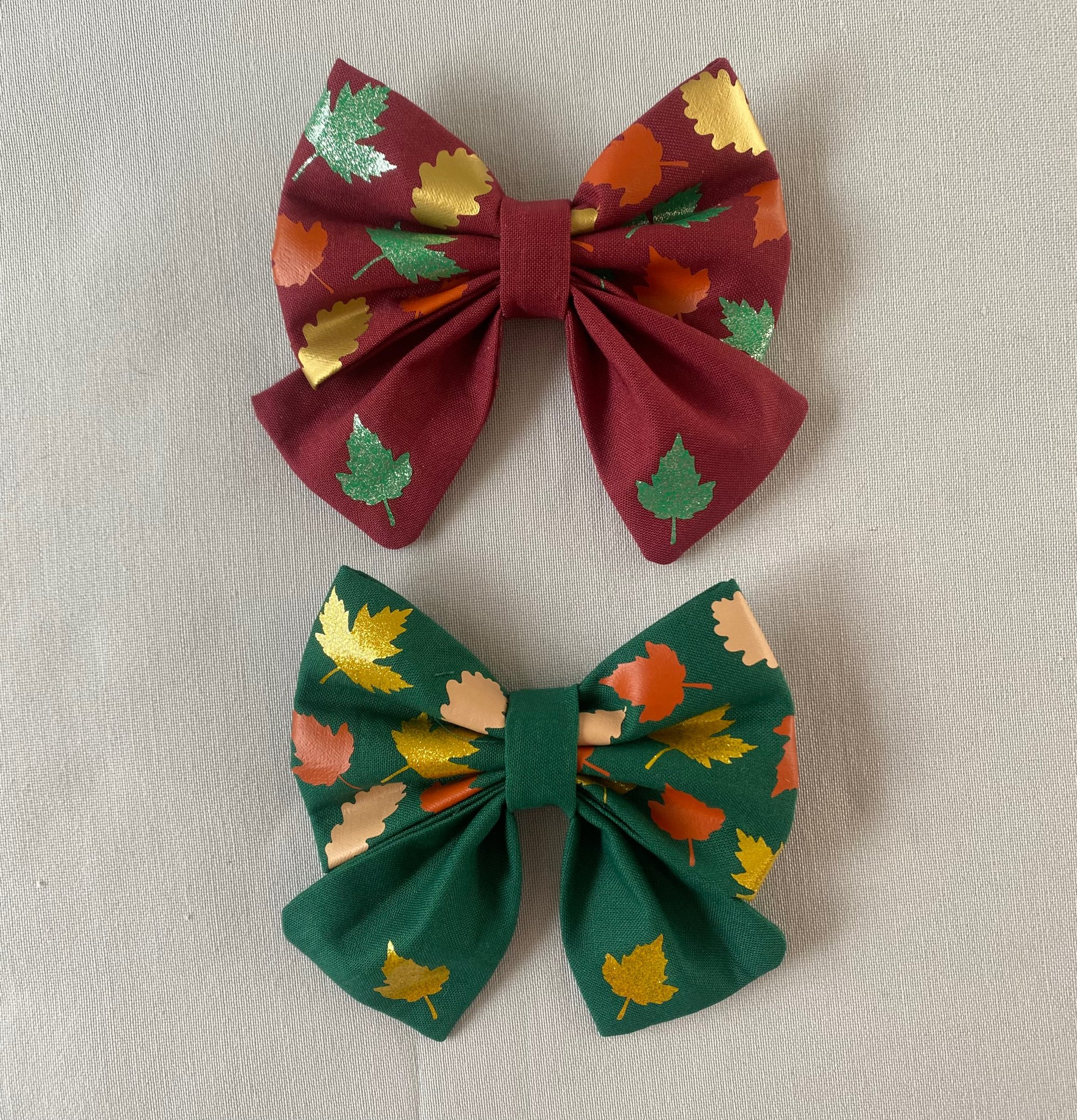 Handmade and hand printed, our Autumn Leaves bow ties and sailor bows (with tails) are designed by us, you won't find these anywhere else.