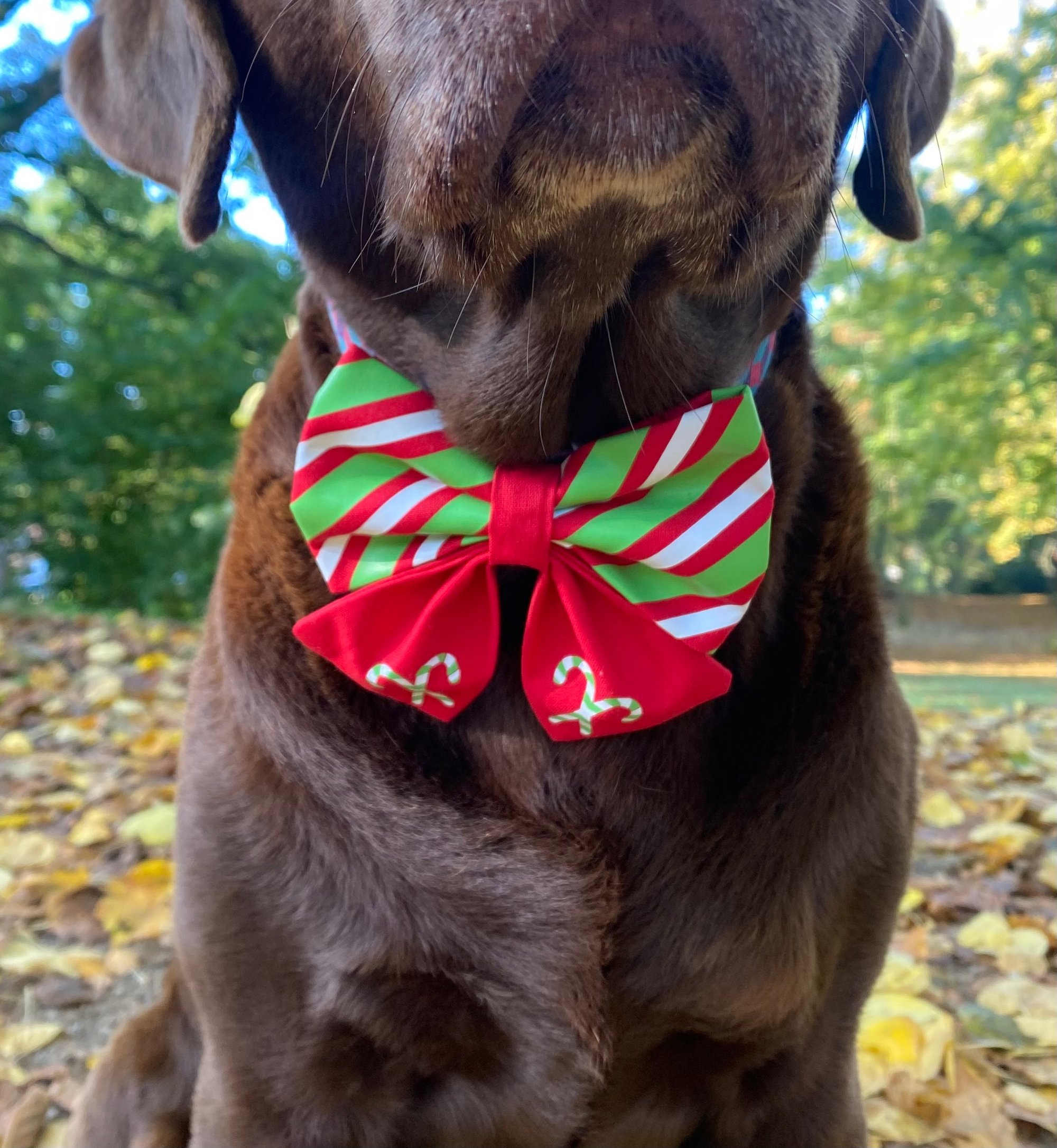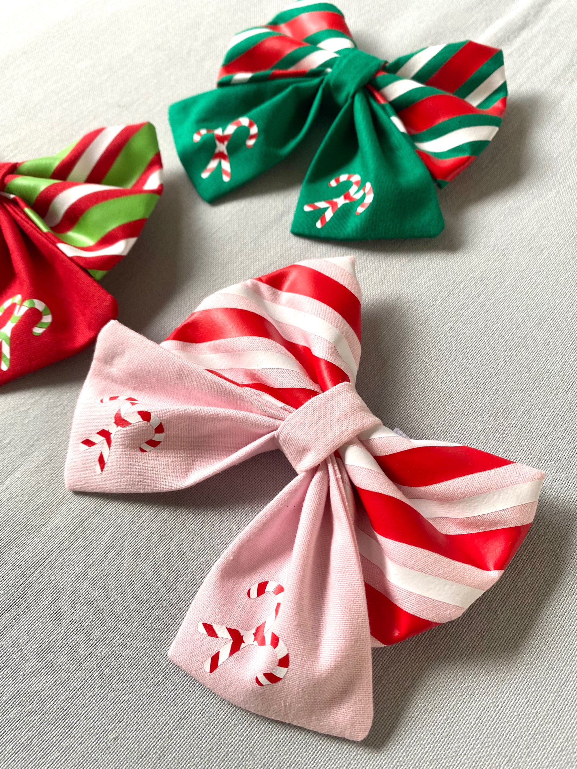Handmade and hand printed candy cane bow ties and sailor bows (with tails). Designed by us, you won't find these anywhere else.
