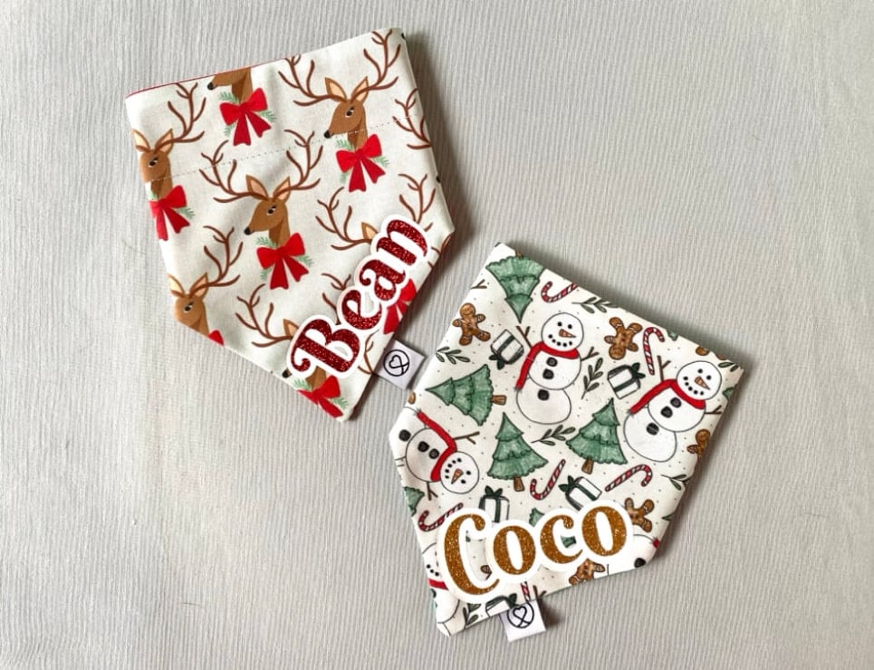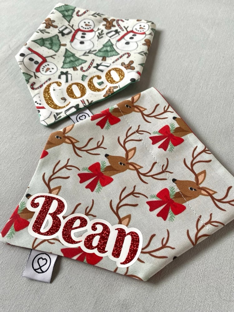 Christmas Personalised Bandanas / Classic Reindeers/ Snowmen