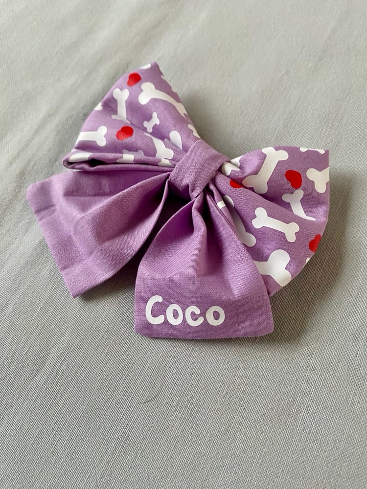 Valentine Dog Sailor Bow - Handmade Lilac or Mint Green with Bones and Hearts Design