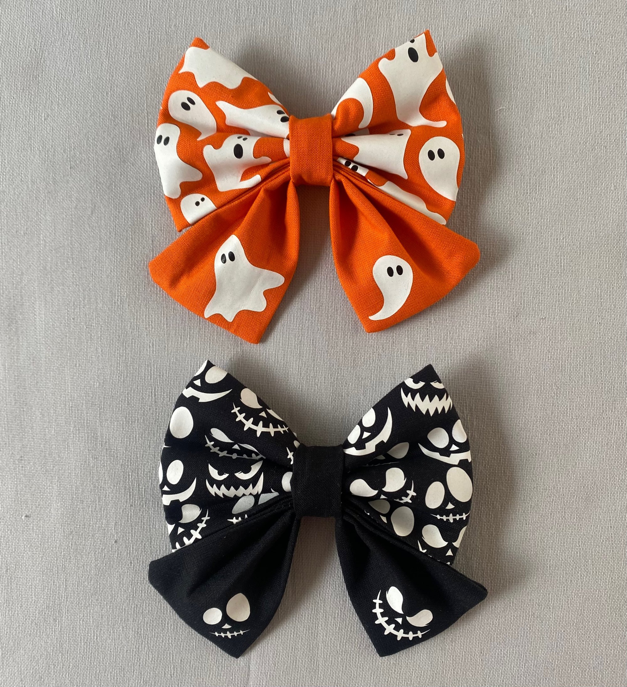 Handmade and hand printed glow-in-the-dark Halloween bow ties and sailor bows (with tails). Designed by us, you won't find these anywhere else.