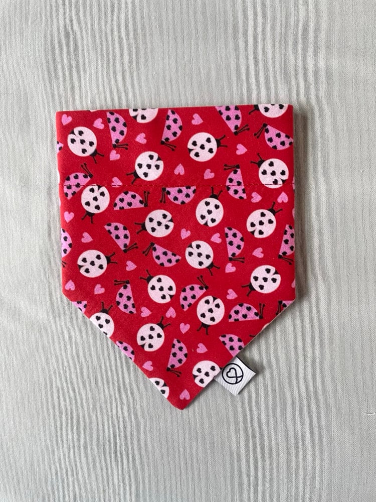 Ladybird Valentine Reversible Dog Bandana - Handmade Cotton Love Bug Bandana