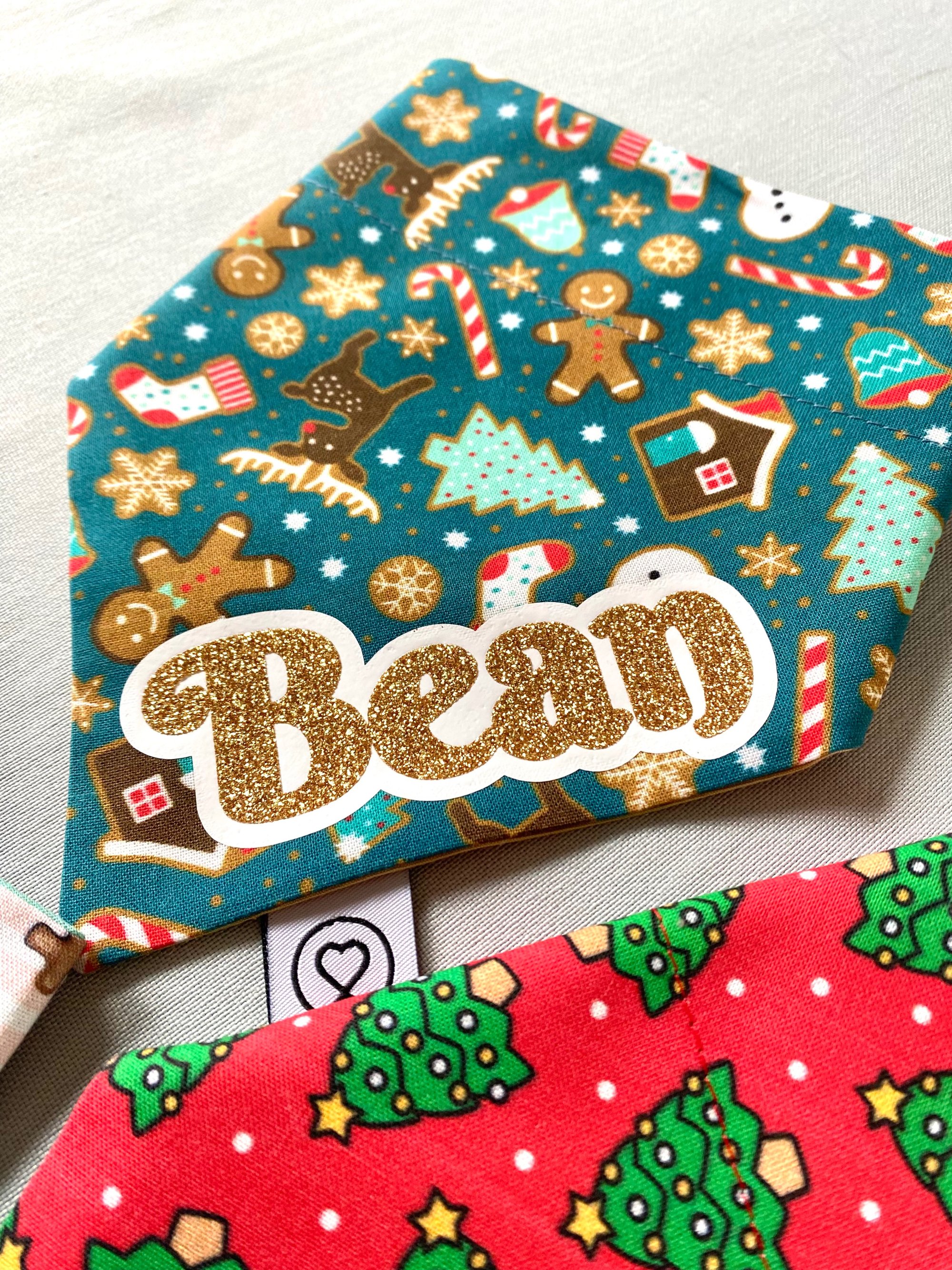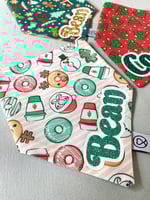 See the size guide in our listing pictures for measurements. Please note that these are the sizes of the ‘slip on collar’ bandanas. The ‘tie on’ bandanas have additional ties attached which you tie around your dog’s neck. The size of the actual bandana is the same.