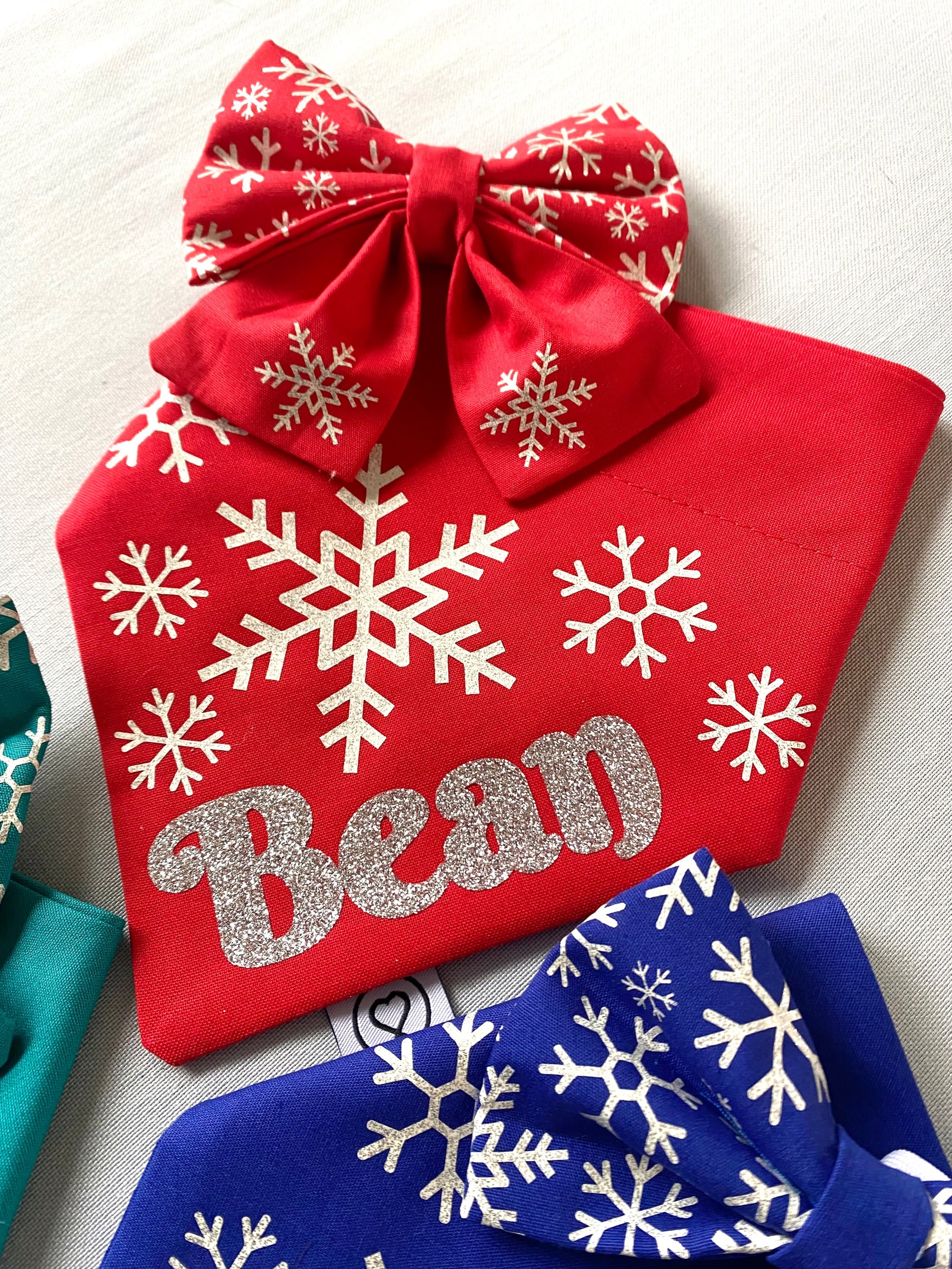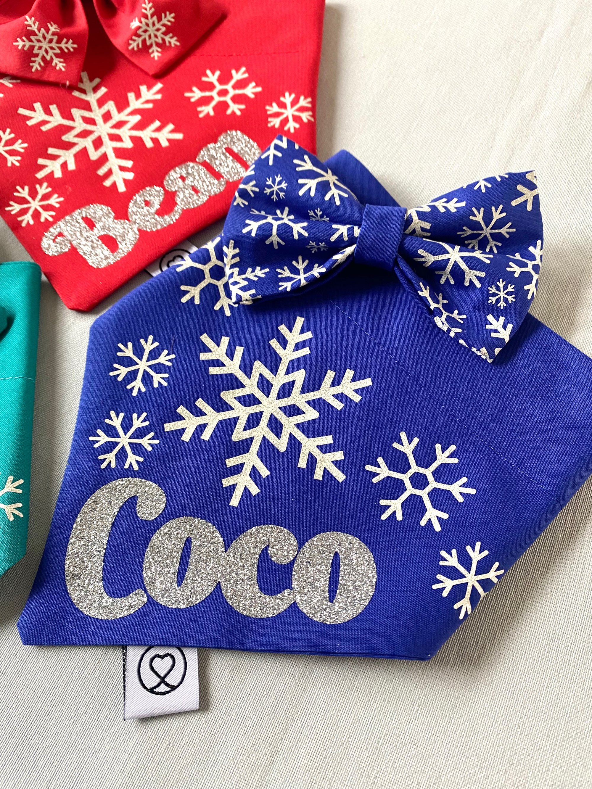 Handmade and hand printed Snowflakes bow ties and sailor bows (with tails). Designed by us, you won't find these anywhere else.
