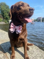Our bows are handmade and hand printed with premium printed cotton fabric and are backed with interfacing to help bows keep their shape longer. Bows include an elastic band on the back to slip easily onto collars. Elastic bands can stretch and fit on most collars up to 1.5" wide. Please message me if you need a bow that fits a collar wider than 1.5".